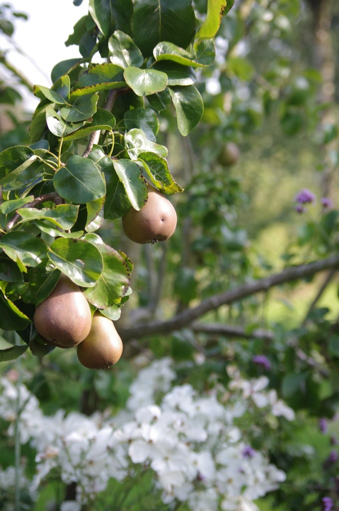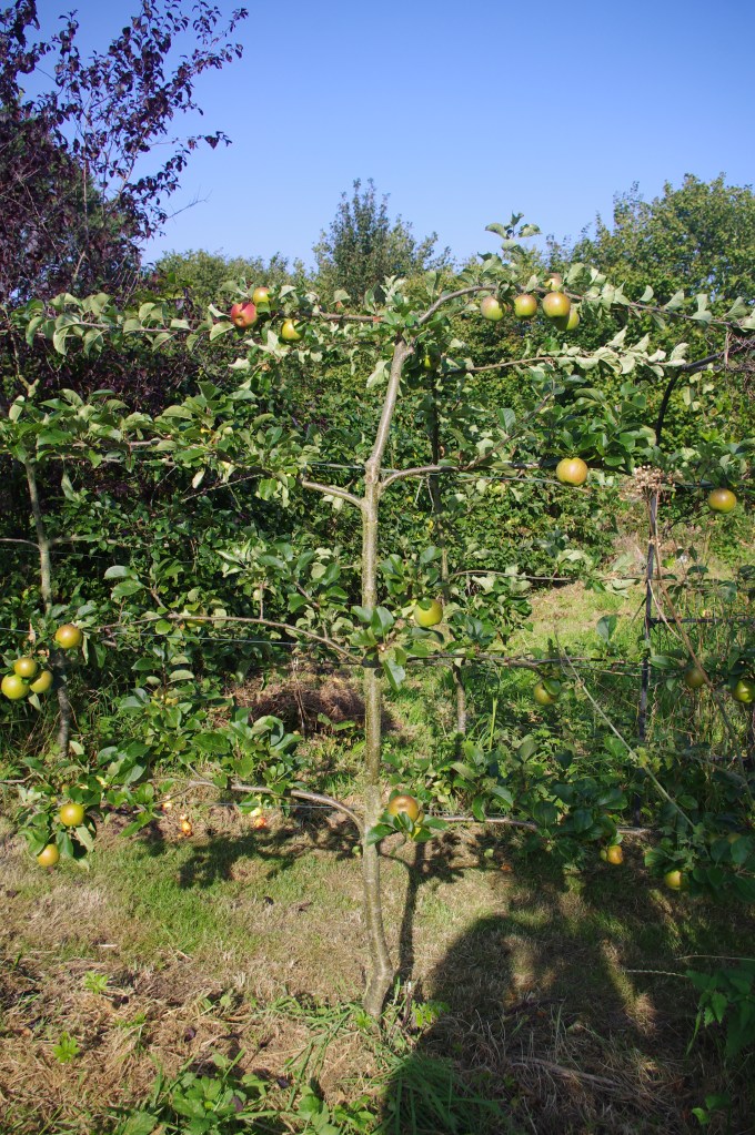 Generally it has been a very poor year for apple crops in this area, a late frost and bad weather at blossom time meant that many trees were bare of fruit. The pear crop was good with Beurre Hardy once again proving to be healthy and reliable, the Conference pear next to it, however, looks in very poor health in comparison.