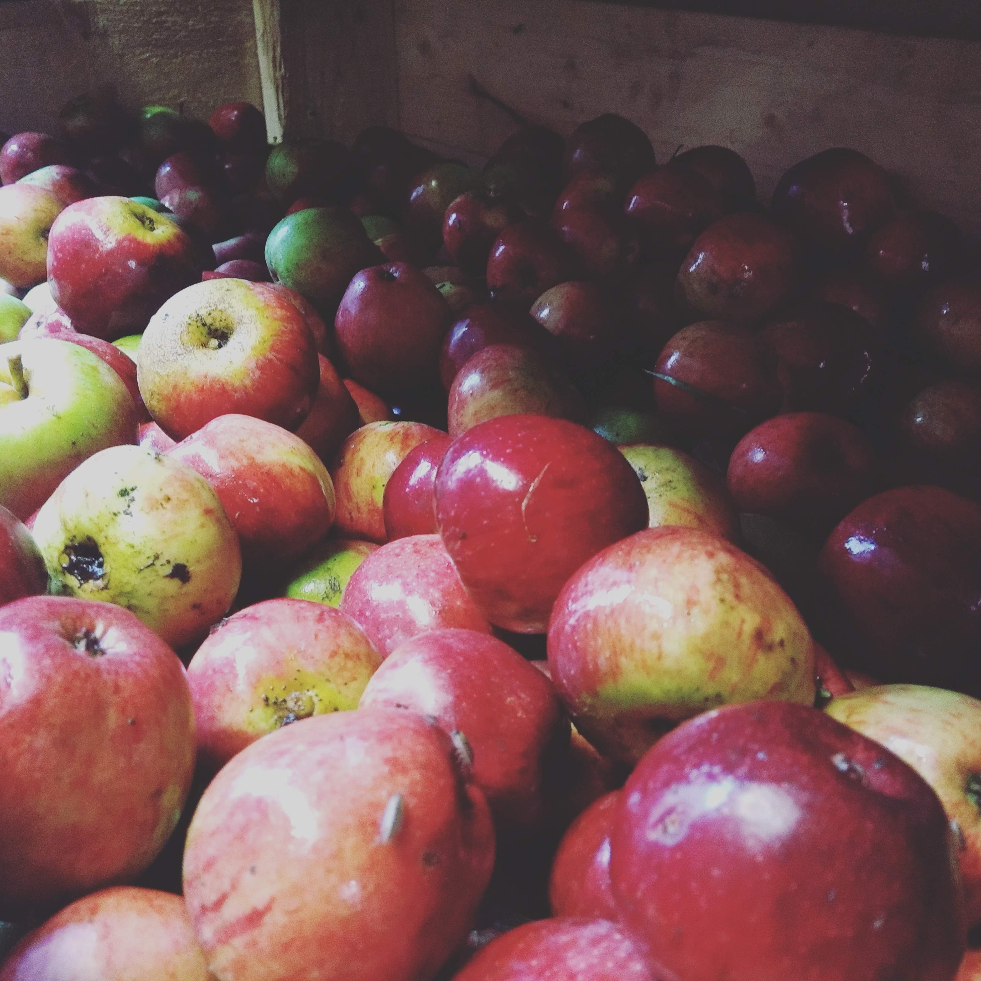Black Dabinett and Kingston Black cider apples ready to be pressed