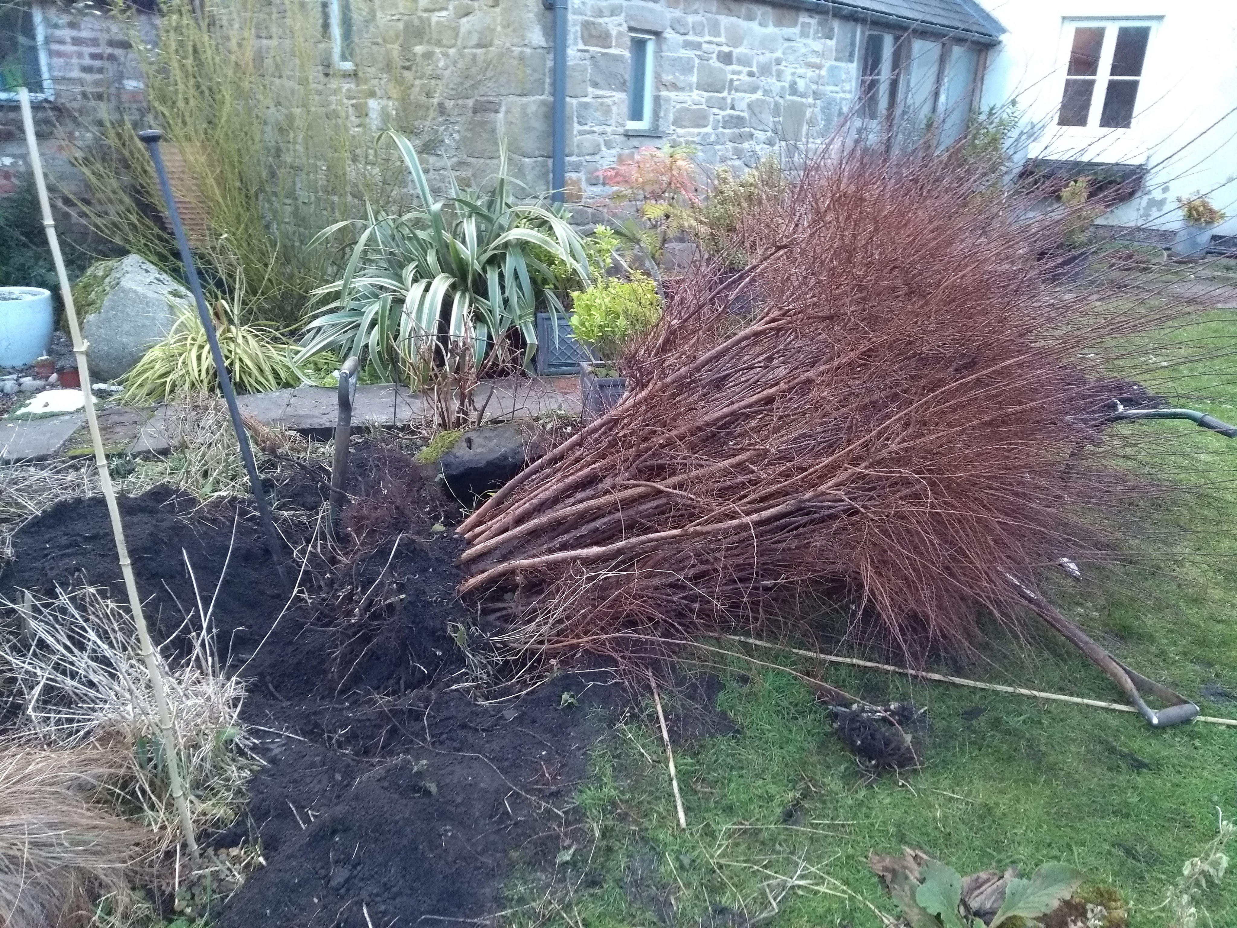 I was recently given a standard holly which was removed from a friends garden which has spurred me into rejigging a border and moving a spirea which has outgrown its space. This particular spirea (Nipponica ‘Snowmound’) forms long arching shoots that are clothed in small white flowers in late spring/early summer. However, in its current position near to a path, the shoots had to be cut back hard every year. Ideally it needs to be planted towards the back of a border or somewhere so it can form its natural and graceful arching mound shape. Winter is the best time to move a deciduous shrub while it is still in dormancy.